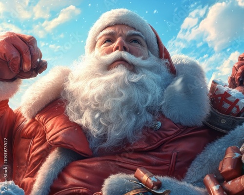 Obraz premium Santa Claus at the North Pole with Gifts A Festive Christmas Scene, The iconic image of Santa Claus, adorned in his traditional red suit and white beard, standing proudly at the North Pole