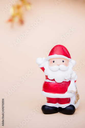 © aboutnuylove, Obraz premium santa claus doll christmas background and gift box and copy space