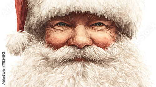 Obraz premium Santa Claus face illustration with beard and hat, isolated on a white background