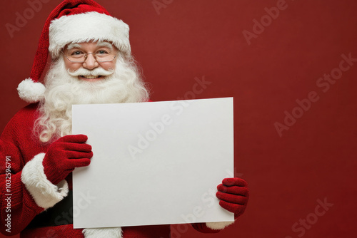 Naklejka premium Santa Claus holding a blank paper, ready for a special message.