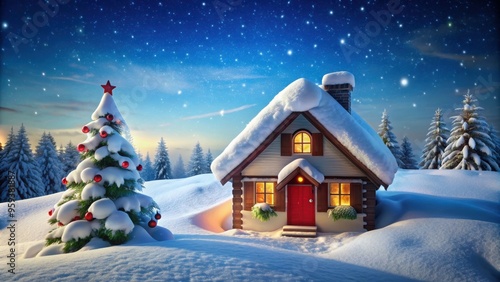 © Jotch, Naklejka premium Santa Claus house covered in snow, winter, Christmas, holiday, North Pole, Santa Claus, seasonal, snowy, cozy, fairy tale, magical