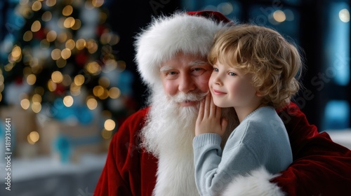 © Minerva Studio, Obraz premium Santa Claus listening to a child's Christmas wish