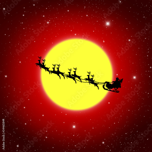 © kanate, Naklejka premium Santa Claus On Sledge With Deer And white Moon