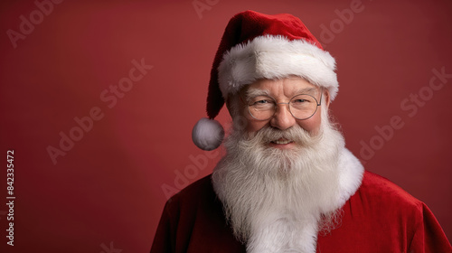 Naklejka premium Santa Claus Portrait with a Red Background.