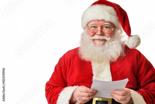 Naklejka premium Santa Claus reading a letter, wearing his classic red suit and glasses,...