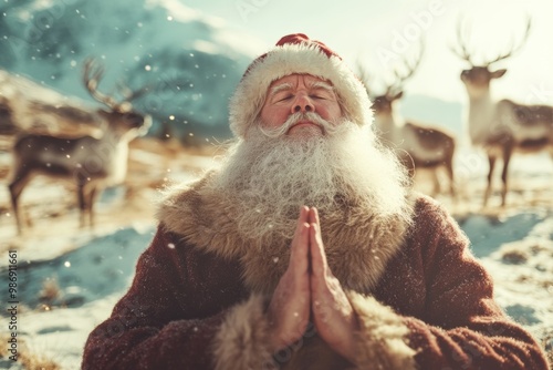 © justAI, Obraz premium Santa Claus Relaxing While Doing Yoga Poses