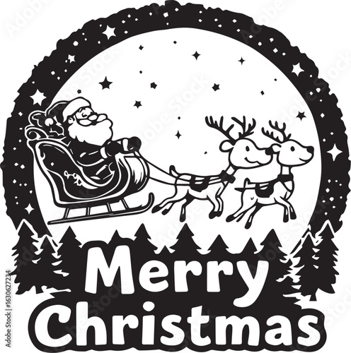 Obraz premium Santa Claus Sleigh Ride with Reindeer