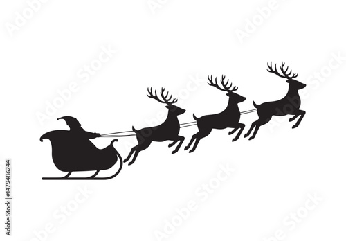 Obraz premium Santa Claus Sleigh Silhouette with Reindeers. Christmas Vector Illustration.