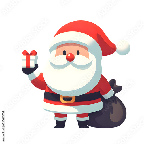© recta, Obraz premium santa claus with a bag and holding a gift on transparent background