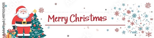 Fototapeta premium Santa Claus, with his cheerful smile and festive cap, spreads joy and warmth, wishing everyone a Merry Christmas filled with happiness and holiday magic.