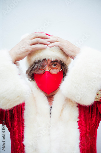 Obraz premium Santa Claus with mask in the city of Madrid.