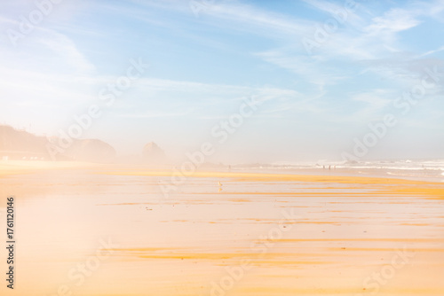 Fototapeta premium Santa Cruz, Torres Vedras, Portugal. 10 September 2025. Wide sandy beach with...
