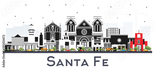 Obraz premium Santa Fe New Mexico City Skyline with Color Buildings Isolated on White.