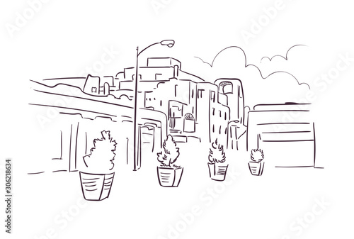 Fototapeta premium Santa Fe New Mexico usa America vector sketch city illustration line art
