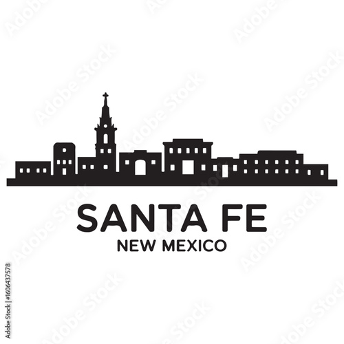 © Nargis, Obraz premium Santa Fe skyline horizontal banner. Santa Fe, New Mexico. Vector template for your design. Vector black silhouette. with white background