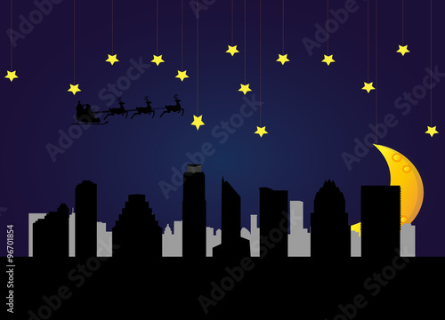 Fototapeta premium santa flying city by the City of Austin