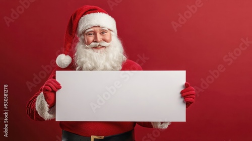 © Johannes, Naklejka premium Santa holding banner with blank space on red background