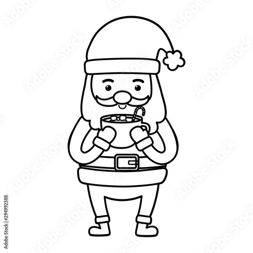 Obraz premium santa holding chocolate cup decoration merry christmas line style