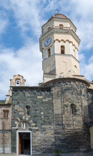© OlegMit, Fototapeta premium Santa Margherita di Antiochia is a church in the town Vernazza of the coastal area Cinque Terre