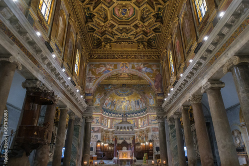 © Francesco, Fototapeta premium Santa Maria in Trastevere Church Interior, Rome, Lazio, Italy