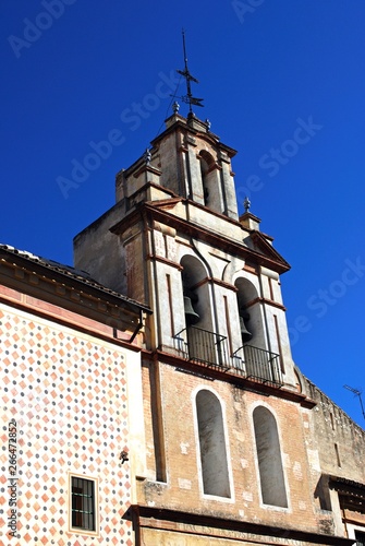 Obraz premium Santa Maria la Blanca church bell tower in Santa Cruz district., Seville, Spain.
