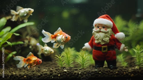 Obraz premium Santa model and Goldfish in aquarium with green plants