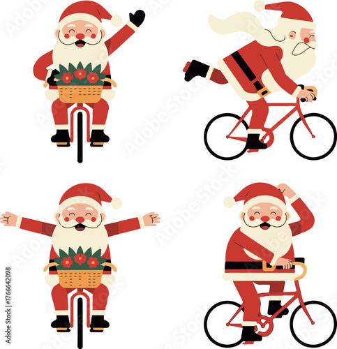 Obraz premium santa riding bike in amazing postures