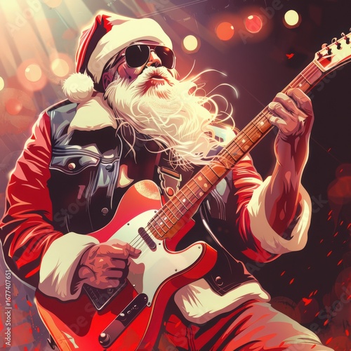 © Larysa, Obraz premium Santa rocking at festive concert Generative AI