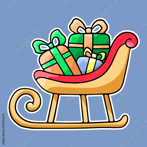 Obraz premium Santa s sleigh with gifts, vector design element, hand drawn