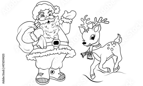 © Sherin, Fototapeta premium Santa with reindeer landscape coloring