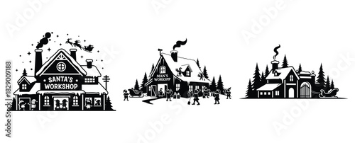 Obraz premium santa workshop silhouette icon set. christmas silhouette icons collection...
