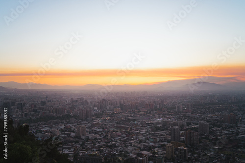 © Pablo Rasero, Fototapeta premium Santiago de Chile skyline from San Cristobal hill during sunset