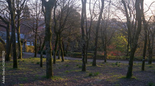 © Diana Leadbetter, Naklejka premium Santiago viewed through trees at dusk
