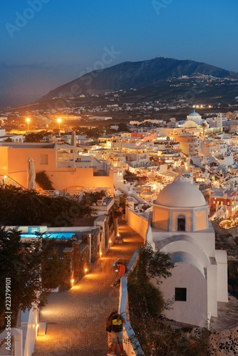 © rabbit75_fot, Fototapeta premium Santorini skyline night street