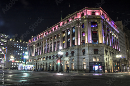 © AlfRibeiro, Fototapeta premium Sao Paulo, Brazil, June 28, 2018. Viaduct of Tea and facade of Shopping Center Light at night, in Sao Paulo, Brazil. Viaduto do Cha is one of the most famous viaduct in Sao Paulo