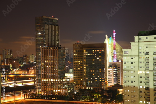 © CYSUN, Fototapeta premium Sao Paulo city skyline with Octavio Frias de Oliveira Bridge and Morumbi district during night, Brazil