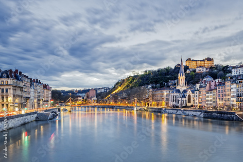 Obraz premium Saone river in Lyon city at evening