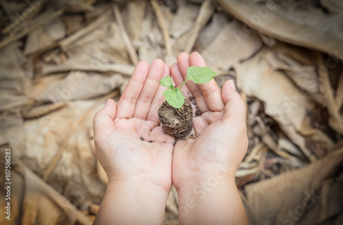 © photoraidz, Obraz premium Sapling in hand as of lady