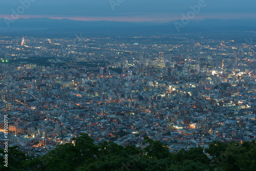 Naklejka premium Sapporo city night view from Mount Moiwa, Sapporo, Hokkaido, Japan