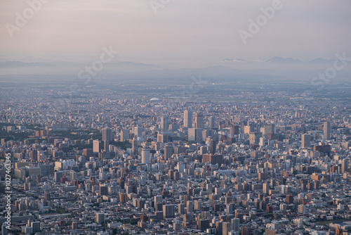Obraz premium Sapporo Skyline from Mount Moiwa