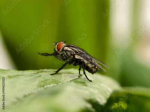© RMX IMG, Naklejka premium sarcophaga carnaria on a leaf