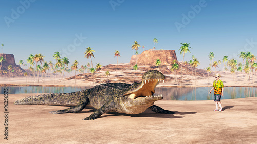© Michael Rosskothen, Obraz premium Sarcosuchus and Tourist