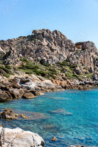 © Luis, Fototapeta premium Sardinia white rock coast in Capo Testa and turquoise water on a sunny day, in Italy