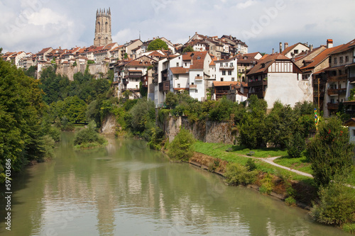 © Santi Rodríguez, Fototapeta premium Sarine River at Fribourg