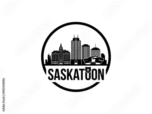 © Katyam1983, Fototapeta premium Saskatoon city of Canada skyline emblem with landmarks