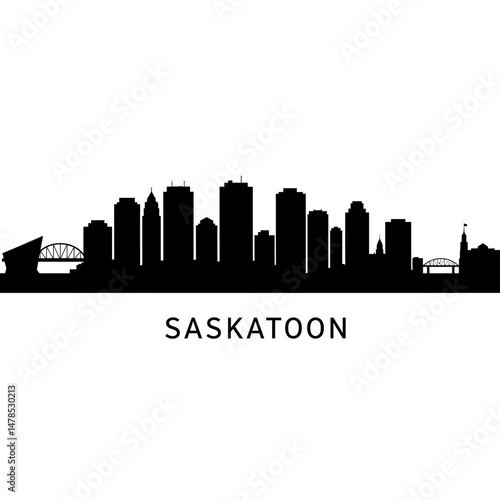Naklejka premium Saskatoon Skyline with Canada Cityscape, and Black Silhouette.