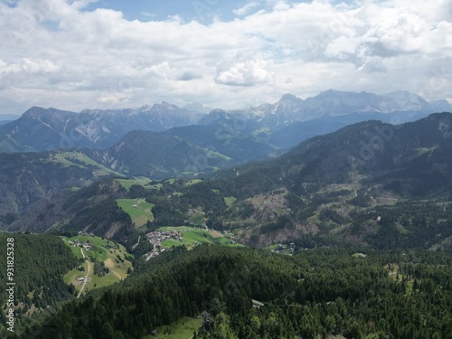 © Izanbar photos, Fototapeta premium Sass de Putia Aerial view of the Dolomites mountain landscape in Trentino, South Tyrol in Northern Italy.
