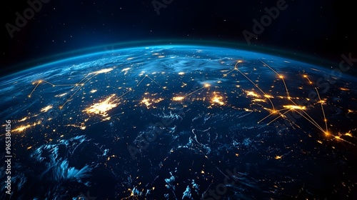© Ratchadaporn, Fototapeta premium Satellite Aerial View of Global Internet Cable Network Connecting Continents
