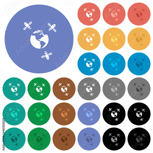 © botond1977, Naklejka premium Satellite communication round flat multi colored icons