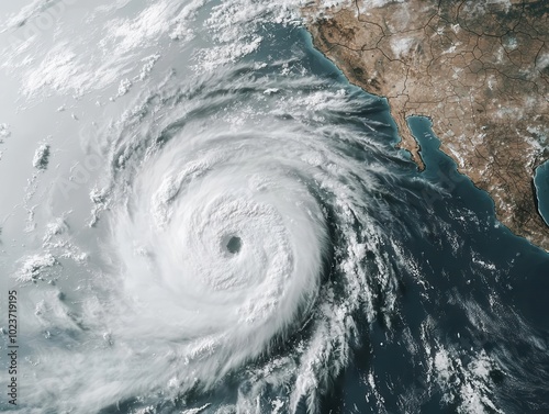 Obraz premium Satellite image-style illustration of a hurricane approaching land with...